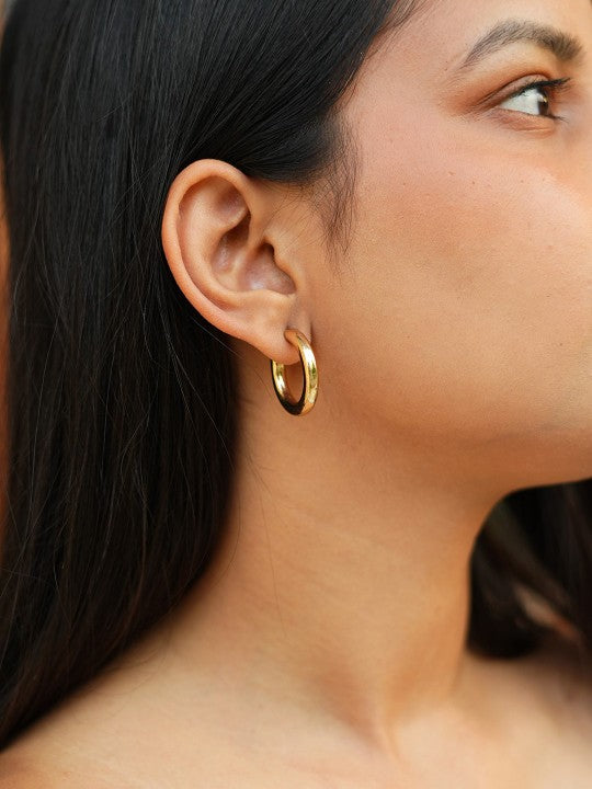 Bold. Sculptural. Effortlessly chic. The Ankara Luxe Tube Hoops are a modern twist on classic Korean fashion, featuring sleek copper tubing wrapped in radiant gold plating. These hoops strike the perfect balance between minimalism and statement, making them ideal for women who love clean lines with a touch of glam. Lightweight yet impactful, they elevate everything from streetwear to evening ensembles.